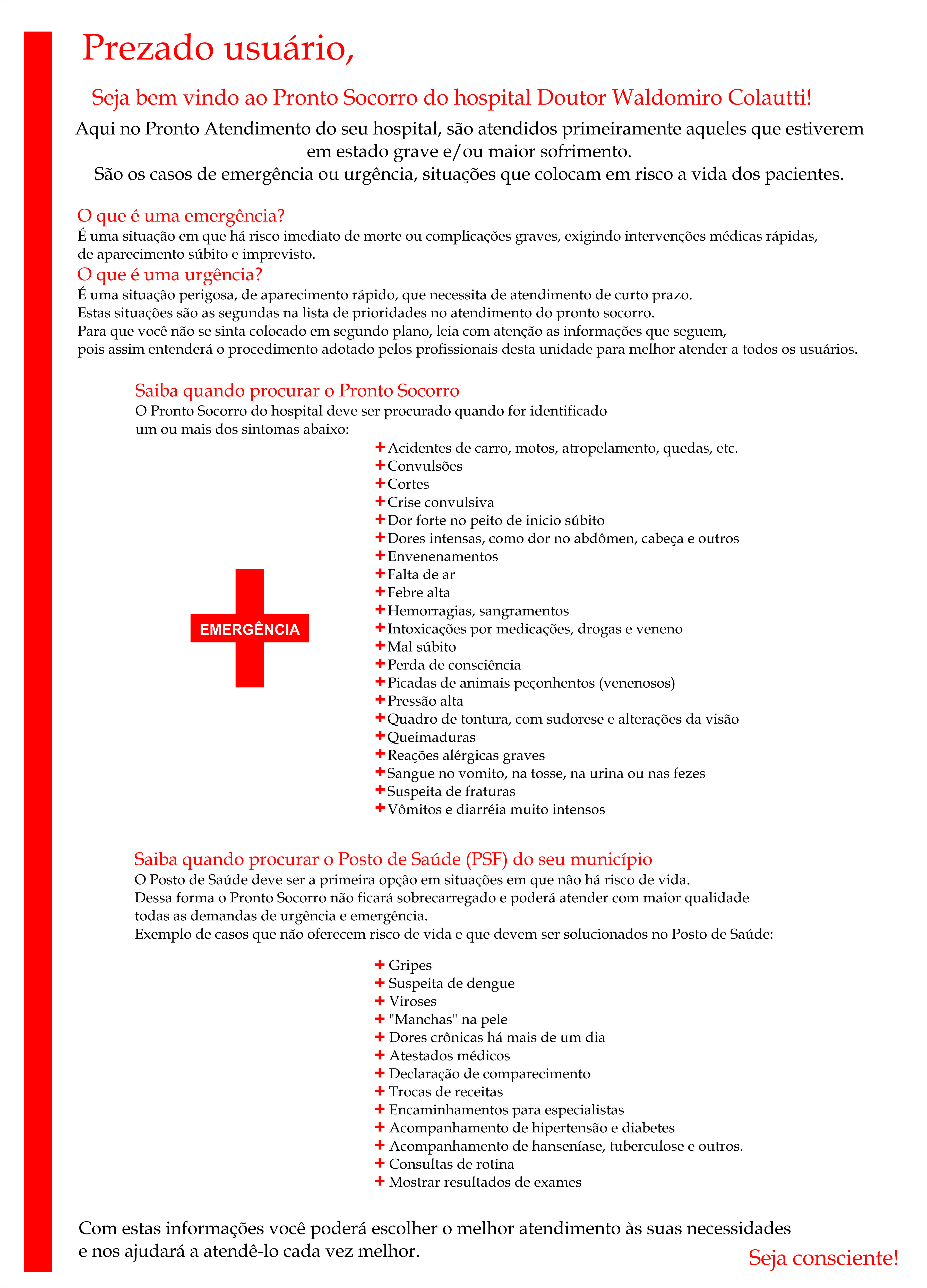 SAIBA QUANDO PROCURAR O PRONTO SOCORRO